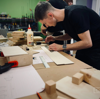 During the next stage of activities in the makerspace, we focused on reading and refining blueprints and instructions, while also exploring in practice different types of cuts, sanding, drilling, joints, bolts, and assembly elements. At this stage, ideas started turning into real and useful educational tools.